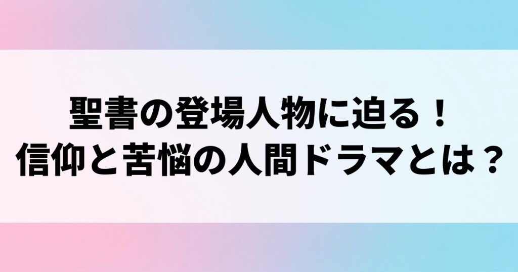 聖書の登場人物に迫る! 信仰と苦悩の人間ドラマとは?