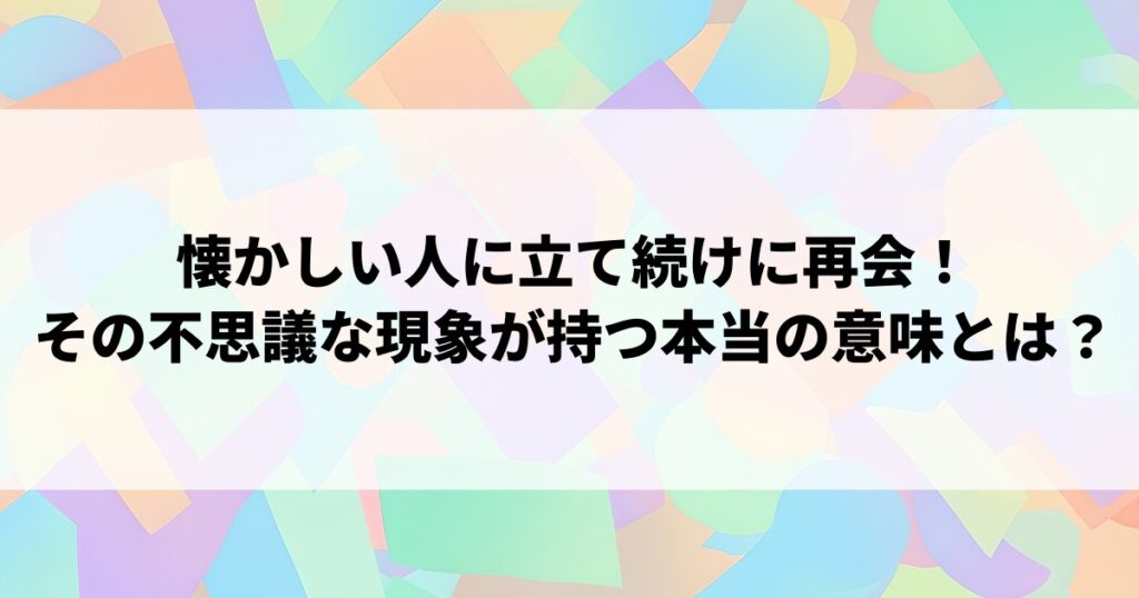 懐かしい人に立て続けに再会!その不思議な現象が持つ本当の意味とは?