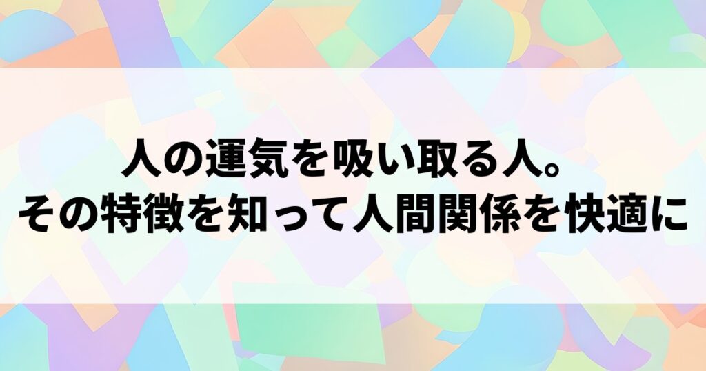 人の運気を吸い取る人。その特徴を知って人間関係を快適に