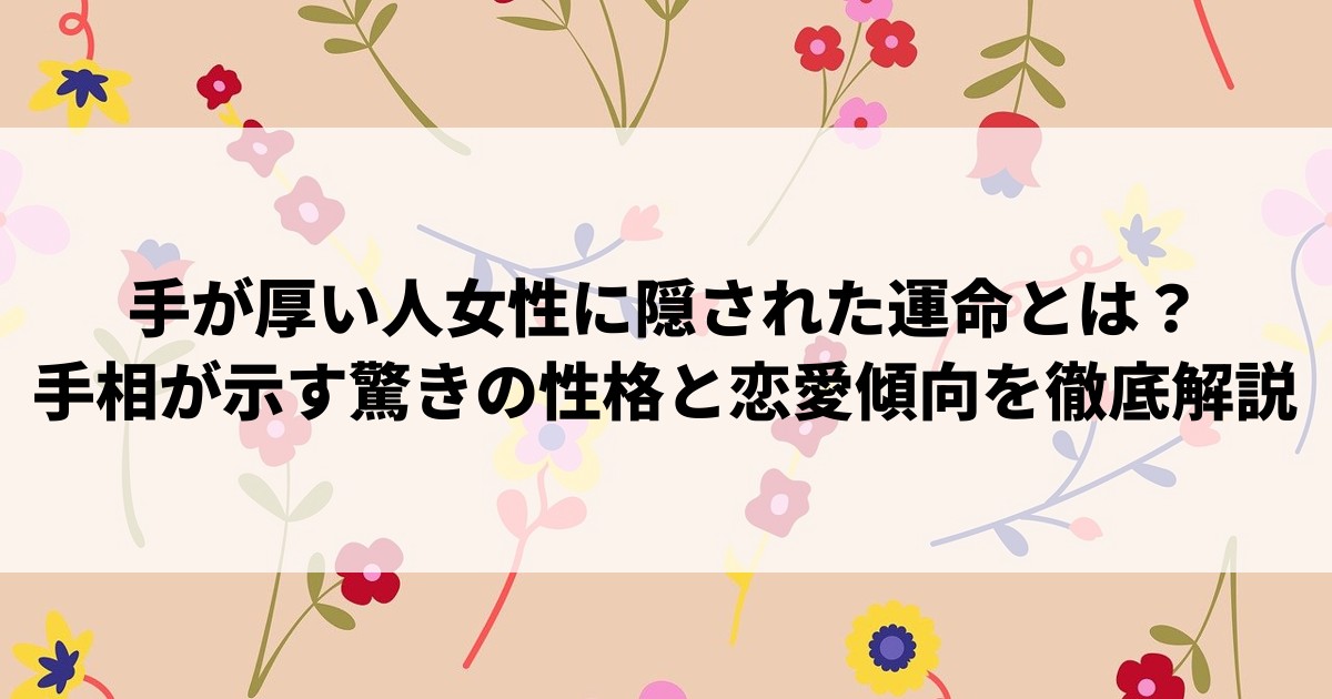 厚みのある手を持つ女性は、しばしばその存在感から、周囲に特定の印象を与えます。本稿では、手が厚い女性に見られる身体的な特徴から、手相学的な観点に基づく性格や恋愛の傾向について解説します。