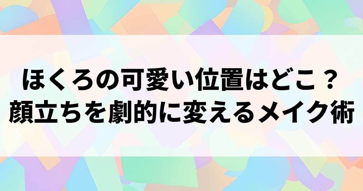 特定の場所に存在するほくろは、顔の印象を大きく左右し、その人をより魅力的に見せることがあります。これは、視覚的なバランスや心理的な効果によるものです。ここでは、特に「可愛い」という印象を与えやすいとされるほくろの位置と、その理由について解説します。