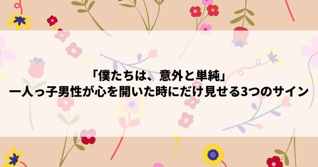 「僕たちは、意外と単純」一人っ子男性が心を開いた時にだけ見せる3つのサイン