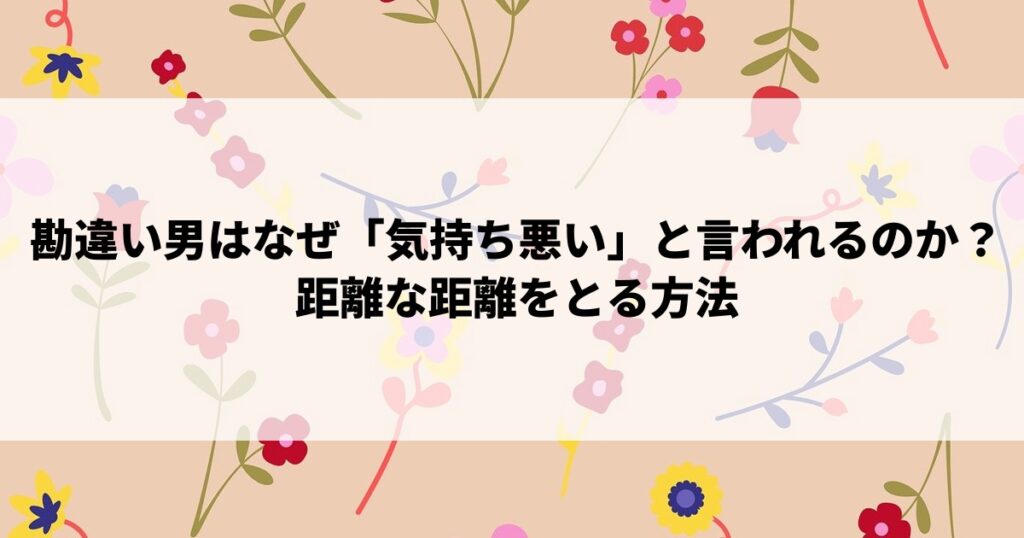 勘違い男はなぜ「気持ち悪い」と言われるのか?距離な距離をとる方法