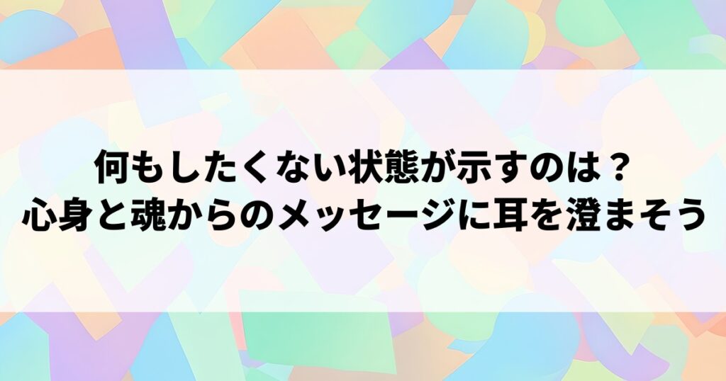 何もしたくない状態が示すのは? 心身と魂からのメッセージに耳を澄まそう
